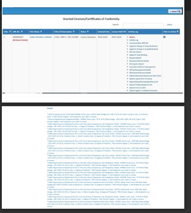 | BIS Certificate Number | CM/L-9600096917 |